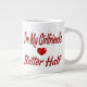 Mug with I'm my girlfriend's better half in 3D red text. Available in several sizes and styles.