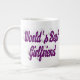 Mug with World's best girlfriend in 3D dark violet text. Mug available in several styles and colours.