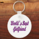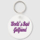 Key chain with World's best girlfriend in 3D dark violet text. Round and square key chains available in several sizes.
