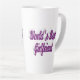 Mug with World's best girlfriend in 3D dark violet text. Mug available in several styles and colours.