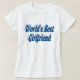Shirt with World's best girlfriend in 3D sea blue text. Shirt available in several styles and colours with long or short sleeves.