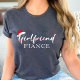This T-Shirt features a girlfriend becomes fiance Christmas Newly Engaged couple Whimsical Calligraphy Design.