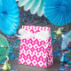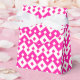 A very pretty Tent Favour Box, with a pattern of decorative chevron shapes in candy pink and white. Part of the Posh & Painterly 'Candy Floss' collection, this pattern can be adjusted to fit any Gift Bag or Box.