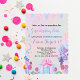 Embark on a world of wonder with our lively 3rd birthday invitation, featuring joyful gift images and a burst of colourful confetti and purple and pink that brings out that pop of colour.