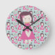 Girls and Handbags design stickers, ornaments, cards, pillows, wall clocks, bottle openers, cutting boards, notebooks, watches, wallets, dry erase boards, and lots of other items with a cute design featuring girls in pink heart dresses, pink and white polka dotted handbags, deep purple stars, and a blue chevron stripe background.
