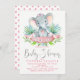 Girls elephant baby shower invitations with adorable baby girl elephant wearing a cute pink bow on a palm leaf background. These elephant baby shower invitations are easily customised for your event by simply adding your event details.