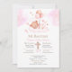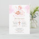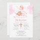 Girl's baptism invitation with a pink bear and balloons Invitación de Bautismo para niña en español