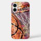 Basketball iPhone tough case for girls with basketball and hoop graphics composite that has been given girly accents in shades of pink purple and of course orange - customise with her name- by katz_d_zynes | You may also like my "Basketball team colours gifts for girls" collection >>> https://www.zazzle.com/collections/119901188031358626