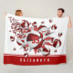 This cool girl's basketball themed fleece blanket features an "explosion" of red and white basketballs in varying sizes and grey and red star shapes - the red star has a tiny pattern of white polka dots - customise with player's name and jersey number - the red colour strip at the bottom edge is customisable - katz_d_zynes