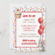 A cute girl's birthday party invitation with a sweet mouse and cupcake theme. Pink, beige and cherry red sprinkles on a cute vanilla cupcake being held by a watercolor mouse!
