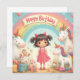 Adorable birthday design featuring unicorns, a rainbow, gifts, and a smiling girl – perfect for kids' products, invitations, or nursery decor.