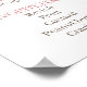 My thoughts on this product was excellent. Well printed in a gloss finishing and just the size l ordered. It arrived in good condition and am overall satisfied with the product. The printing turned out great. I was quite surprised with the finishing touch to the poster. The semi gloss was just right and a perfect size to display at the wedding.