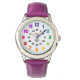 Perfect for kids in school who need to learn how to tell time, keep a schedule or know when they are being picked up from a friend's house! This watch features easy to read bold numerals with the hours in a rainbow of colours, and the minutes in black. The hour and minute hands are labelled to help them learn to tell what time it is.