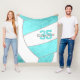 This cosy volleyball themed fleece blanket for her features the image of an abstractly oversized turquoise and white stylised volleyball that covers the entire blanket - personalise with the athlete's name and jersey number - by katz_d_zynes