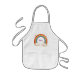 This personalised apron features an attractive watercolor rainbow with glowing golden stars and fluffy clouds.