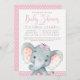 Girls Cute Elephant Baby Shower Invitations
