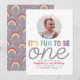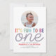 Celebrate your little one’s milestone with this adorable “It’s Fun to Be One” 1st birthday invitation. This playful design features colorful retro-style lettering, space to add your child’s photo on the front, and a coordinating purple back with rainbows and star details. Perfect for a modern girl’s first birthday party, retro rainbow theme, or minimalist one year old celebration. Easily personalize with your child’s name and all the party details.
