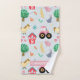 This cute and modern kids bath towel set features a farm animal cartoon pattern, with a pink tractor, barn, pigs, horses, chickens, rabbits, and flowers, and can be personalised with your girls name and monogram. The perfect agriculture-themed gift for your baby, toddler, or child!