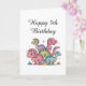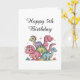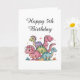 This adorable watercolor design includes watercolor dinosaurs in various hues of purple, pink, and green. This dinosaur birthday card design also includes the phrase "Happy Birthday!" on the front of the card. The inside of the card includes a place to add a name as well as the phrase "Hope your birthday is T-riffic!"