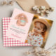 This cute and girly plush bunny kids birthday thank you card has a soft rabbit toy on the front, space to add a photo, and pink gingham on the back. Perfect for a bunny, woodland, or cuddly girls birthday theme.