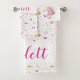 A cute pink bath towel set for girls featuring a princess crown design with space to personalize a name. Soft and fun for everyday use or bath time.