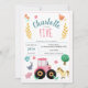 Girls Cute Pink Rustic Farm Tractor Birthday Invitation