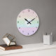 Girl's Cute Rainbow Colour Pastel Monogram Nursery Large Clock