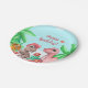 Bright and playful dinosaur party plates featuring pink, orange, and brown dinos surrounded by tropical leaves and flowers. A fun way to bring a prehistoric theme to your girl’s birthday celebration, while matching perfectly with coordinating dinosaur napkins, favour bags, and party decor.