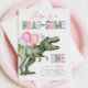Girl's Dinosaur First Birthday Invitation