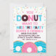 This girl's donut want to miss birthday invitation features three brightly colored donuts on a white background. The design also features a multicolored heading that can't be edited and some sprinkles. I wanted to create some donuts invitation for the store because it's a fun, colorful and popular party theme. This girl's donuts party birthday invitations ready to be personalized.