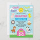 This cute & colourful design features illustration of adorable farm animals on a tractor. You can easily personalise the invite with your details. For more advanced customisation of this design, simply select the "Customise Further" button. © Blue Bunny Studio