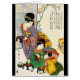 Vintage Ukiyo-e image of a woman and two young children celebrating Girl's Festival with a tea party. They wear colourful kimonos and red bows in their hair. From an original 19th century (1801) woodcut, Hinamatsuri (Girl's festival), by Kitagawa Utamaro. All Rights Reserved © 2015 padre art