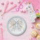 Girl's First Communion Dusty Blue Floral Bow Paper Plate