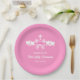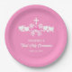 Girl's First Communion Pink Gingham Bow Paper Plate
