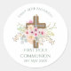 Girls First Holy Communion Floral Cross Customised Classic Round Sticker