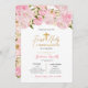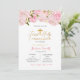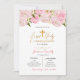 Elegant Floral First Holy Communion Invitation with gold confetti and pink pretty floral.