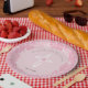 This pretty and feminine first holy communion paper plate design can be customised for your girl's special religious occasion. The text and background colour can be changed to your liking. It features a stylish illustrated cross as well as pink hydrangea flowers. Matching invitations and other paper goods for your celebration are available.