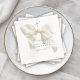 A stylishly elegant and simple First Holy Communion napkin to honor one of life’s most meaningful milestones with grace and beauty. A soft ivory watercolor bow highlights this event. A subtle gold cross above completes the design with a reverent, faith-centered focus. Perfect for girls’ First Holy Communion celebrations, this napkin blends classic tradition with today’s most sought-after aesthetic—soft romantic minimalism. It feels heirloom-worthy yet fresh, making it ideal for this year's celebrations where elegance meets intention. Napkins are available in 3 sizes; shown here in the smaller cocktail size, they are also available in luncheon and dinner sizes with both plain and coined edges.