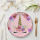 Girls Floral & Gold Glitter Unicorn Birthday Party Paper Plate