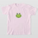 This girl's shirt features a cute cartoon frog! The frog itself is great with bright white cartoon eyes. Perfect for everyday wear and back to school!