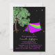 Colourful girl's camping birthday party invitation done in black with a neon pink tent and tree with twinkling lights. Personalise all the text for your daughter's glamping party.