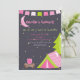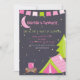 Let's go glamping with friends! Camp out in the backyard and have a sleepover under the stars! There's a starry night background with a pink tent next to a campfire. This camping themed birthday party invitation can be personalised with your birthday party information easily and quickly.