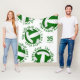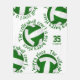 This cool volleyball themed fleece blanket features 5 randomly arranged green and white volleyballs with the text, "The volleyball court is my happy place" in green encircling each volleyball in a playful typographic font, all on a white background - her name and jersey number are customisable - by katz_d_zynes
