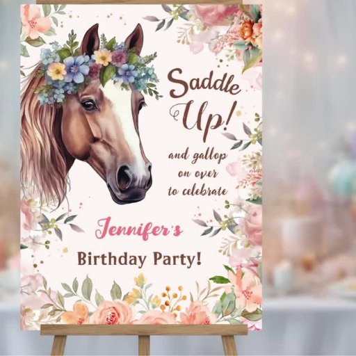 Girls Horse 10th Birthday Pink Floral Saddle Up Invitation