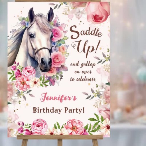 Girls Horse 6th Birthday Bloom Flowers Saddle UpDesigned by H-Art Studio Design