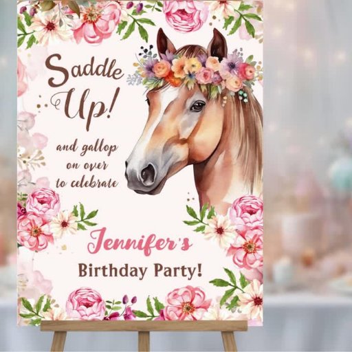 Girls Horse 8th Birthday Floral Saddle Up! Invitation