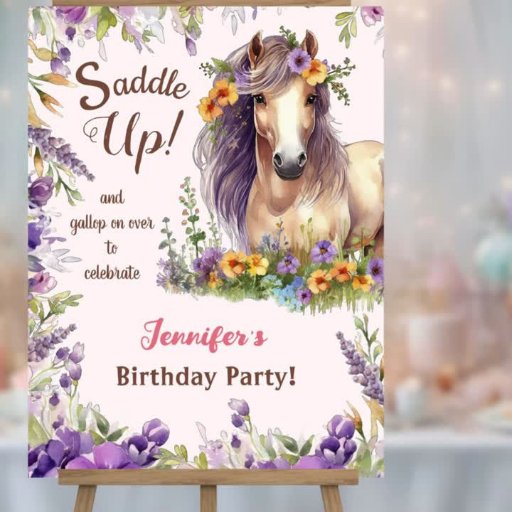 Girls Horse 9th Birthday Purple Floral Saddle Up Invitation