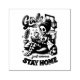 Vibrant, colourful design featuring a female skeleton sitting in a comfortable chair with her cat, reading a book and holding a cup of coffee. The colourful text reads: "Girls just wanna stay home". This design is available on a wide variety of products.