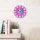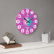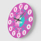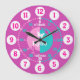 Colourful girls graphic wall clock colour coded to help assist your child to read a clock. This colourful teaching aid includes minutes and hours and past and to making child's play of telling the time. Clock colour coded in pinks, aqua and white featuring a little white butterfly and can be customised with your name of choice. Currently reads Kylie. Designed exclusively by Sarah Trett. A great addition to a little girl's bedroom who is just learning to read a clock face.