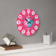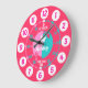 Colourful girls graphic wall clock colour coded to help assist your child to read a clock. This colourful teaching aid includes minutes and hours and past and to making child's play of telling the time. Clock colour coded in pinks, aqua and white featuring a little white butterfly and can be customised with your name of choice. Currently reads Amity. Designed exclusively by Sarah Trett. A great addition to a little girl's bedroom who is just learning to read a clock face.